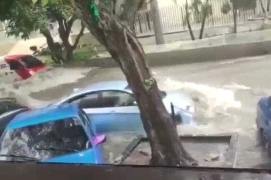 El fuerte arroyo arrastró el carro particular por varios metros, haciendo que se detuviera al chocar con otro vehículo que estaba allí estacionado y, fue en ese momento, en que las personas que presenciaban lo sucedido evitaron que el menor y el adulto quedaran atrapados.