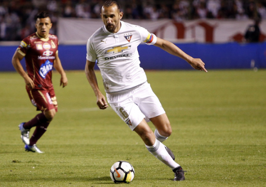 Deportes Tolima perdió por la mínima diferencia ante la Liga Deportiva Universitaria en el marco de la celebración de la 'Noche Blanca 2108'. El único gol del compromiso llegó a través del argentino Hernán Barcos a los 62 minutos del tiempo global, luego de que Julián Quiñones cometiera una infracción dentro del área.