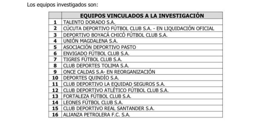 Según Barreto, la Superintendencia también formuló pliego de cargos contra “20 personas naturales vinculadas a esas posibles prácticas restrictivas”. Los hechos se originaron a raíz de una queja presentada por la Asociación Colombiana de Futbolistas Profesionales (Acolfutpro).