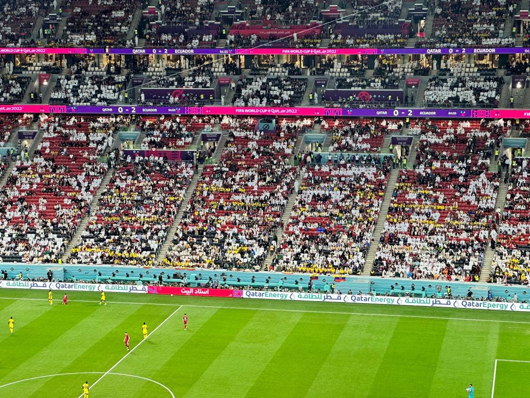 Y es que, a medida que avanzaban los minutos el rojo de los asientos fue sustituyendo al blanco de las túnicas de muchos de los aficionados de Qatar que abandonaron a su selección concluidos los primeros 45 minutos de su debut mundialista, cuando ya perdían 0-2 contra el equipo ecuatoriano.