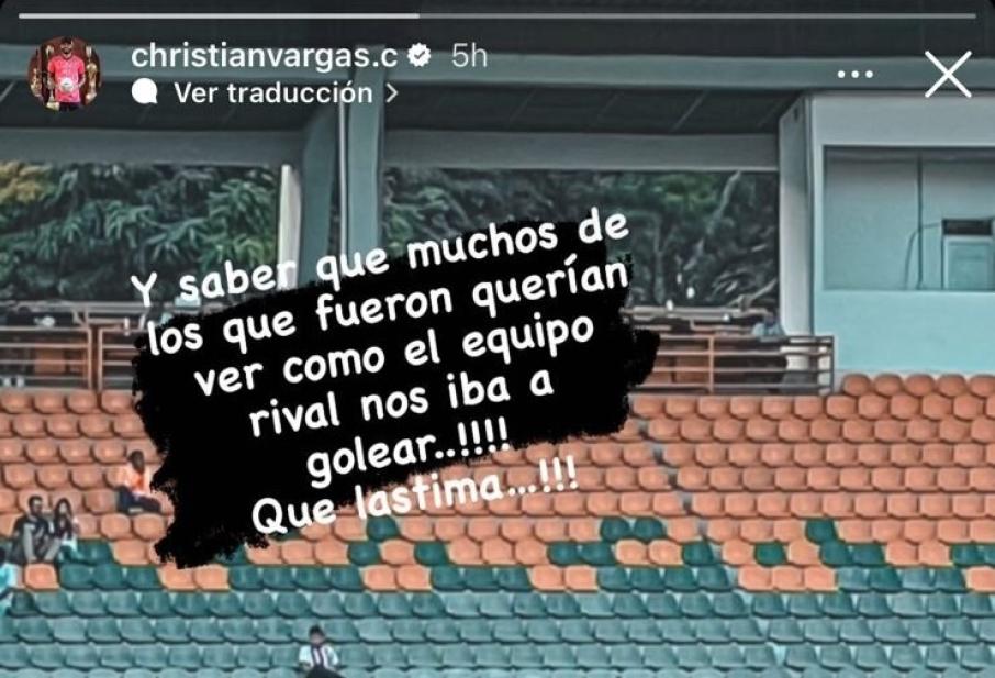 En medio de la crisis que afronta Deportes Tolima, con dos eliminaciones consecutivas de Liga BetPlay y un extenso registro de partidos sin conocer la victoria, Cristian Vargas se fue de frente contra la hinchada mediante una historia publicada en su cuenta oficial de Instagram.