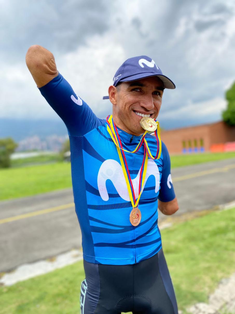 En el segundo día de competencia de la Copa Colombia Paracycling parada Medellín, el destacado ciclista Juan José Florián, conocido como Mochoman y representante del departamento del Meta con el apoyo de Movistar Colombia, ha conquistado dos medallas impresionantes. Florián se llevó la medalla de Oro en la prueba de contrarreloj y la medalla de Bronce en la prueba de ruta en la categoría C2. Este es solo el comienzo de la competencia, y estaremos atentos para actualizar los resultados.