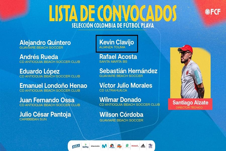 El director técnico de la Selección Colombia Masculina de Fútbol Playa, Santiago Álzate, dio a conocer los nombres de los 12 jugadores convocados que estarán representando a Colombia en los Juegos ODESUR de Playa y Mar que se disputarán en Santa Marta y donde aparece una cuota ´Vinotinto y Oro´.