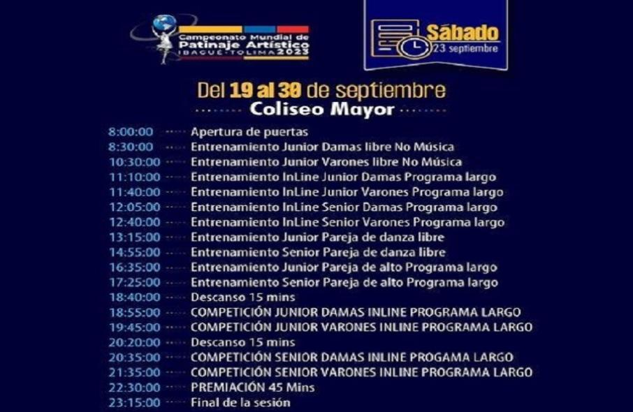 El Campeonato Mundial de Patinaje Artístico Ibagué 2023 llega hoy a su quinta jornada.