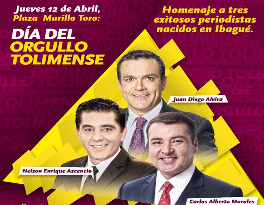 5:00 p.m. Homenaje y entrega de reconocimientos a TRES EXITOSOS PERIODISTAS NACIDOS EN IBAGUÉ: Juan Diego Alvira, Nelson Enrique Ascencio y Carlos Alberto Morales. Entrega de reconocimiento AL DESTACADO EMPRESARIO Jader Zuleta. Lugar: Teatro Tolima.