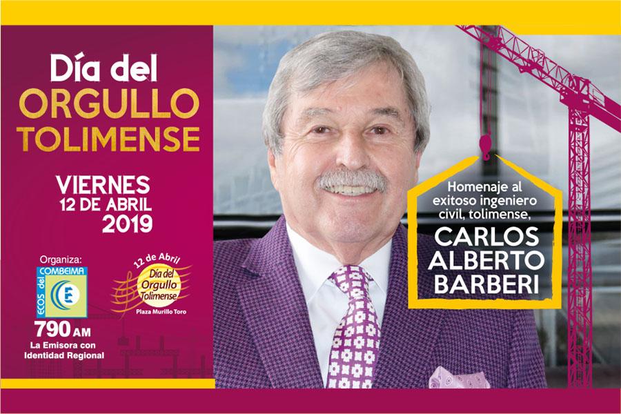 Hoy viernes 12 de abril se celebra el Día del Orgullo Tolimense en su versión número once, este año se brindará un gran homenaje al tolimense y exitoso ingeniero civil, presidente de Prabyc, Carlos Alberto Barberi, por su gran trayectoria.