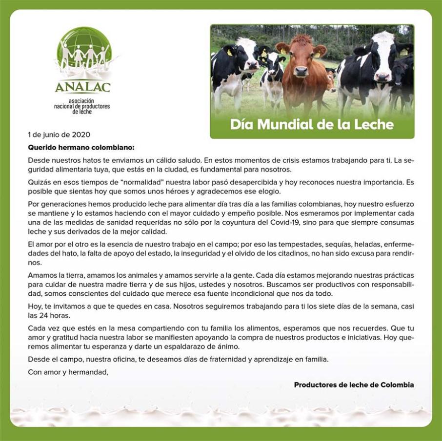 Invitamos a Javier Ardila, director de Analac - Asociación Nacional de Productores de Leche, quien nos comentó que el lema de este años es: "Quien toma leche, es buena leche."