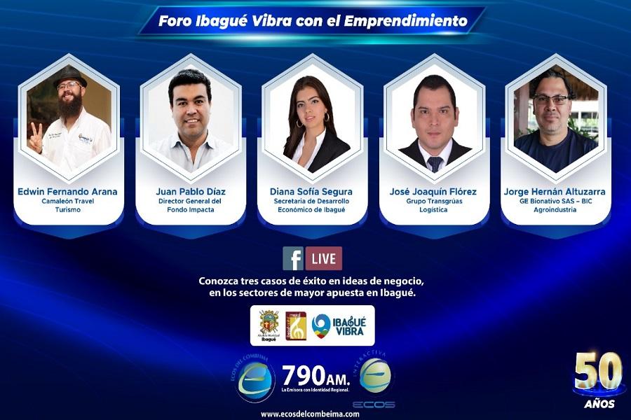 Teniendo en cuenta la importancia que desde la Administración Ibagué Vibra se le viene dando a temas de desarrollo económico como lo es el emprendimiento, la innovación, la productividad, la competitividad y la atracción de inversión, Ecos del Combeima, la Emisora con Identidad Regional, presenta el Foro Ibagué Vibra con el Emprendimiento.