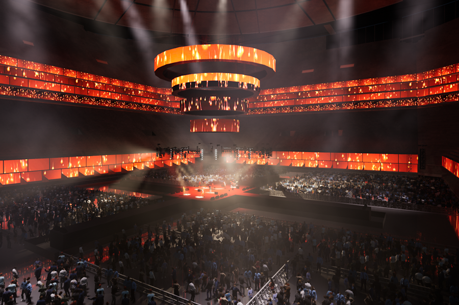 La 'robusta' obra de infraestructura gozará de cesped movil retráctil para albergar espectáculos de masiva asistencia, hotel cinco estrellas, 100 apartamentos de lujo, 350 palcos que a su vez funcionará como oficinas, estudios de televisión, cine y música, tres auditorios independientes, museo, entre otros espacios.
