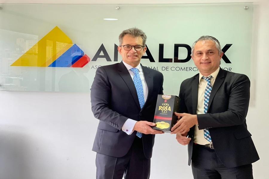 El pasado lunes 13 de septiembre, se reunieron en la ciudad de Bogota, el gerente de la Fábrica de Licores del Tolima, Franz Bedoya con Javier Diaz Molina, presidente de Analdex (Asociacion Nacional de Comercio Exterior) y Diego Rengifo García vicepresidente Técnico de la corporación, con el propósito de desarrollar nuevas estrategias de mercado para el posicionamiento de Aguardiente Tapa Roja en el exterior.