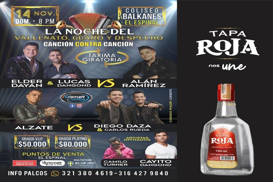 Con artistas de talla internacional como Alzate, Elder Dayan y Diego Daza el próximo 14 de noviembre en el coliseo de Balkanes de El Espinal se realizará el concierto de despecho más importante del año.