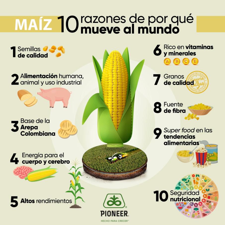 También existe una gran oportunidad de hacer evidente la trascendencia del maíz en la industria alimentaria y en otros sectores donde está presente en la vida diaria de los latinoamericanos. En este sentido, Corteva Agriscience y su marca de semillas Pioneer, impulsan la segunda edición de la Semana Pioneer: “Hechos de Maíz”, los días 30 y 31 de agosto, que se transmitirá a Colombia a través de la plataforma virtual de Facebook Live @PioneerColombia.