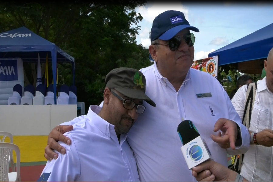 En un momento de la feria, el hoy gerente del centro vacacional Cafam - Melgar, Carlos Paz, quien fuera en el pasado myor de las fuerzas armadas, se encontró con un antiguo combatiente de la exgerrilla de las FARC, alias ‘Donald’, quien se encontraba participando del evento con una exibición de sus productos.