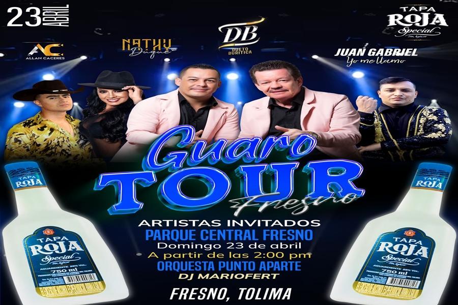 El 'Guaro Tour' llega al norte del Tolima en el municipio de Fresno a celebrar por primera vez “La Gran Exposición Equina Grado B” que tendrá lugar los días 22 y 23 de abril y tendrá la presencia de los mejores ejemplares de Colombia con el patrocinio oficial de Aguardiente Tapa Roja.