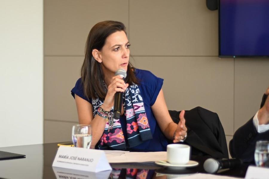 La vicepresidenta de Estrategia Corporativa de Bancóldex, María José Naranjo, explicó junto al ministro de Comercio, Industria y Turismo, Germán Umaña, las características de cada una de las cuatro líneasde crédito para mipymes, lanzadas por el gobierno.