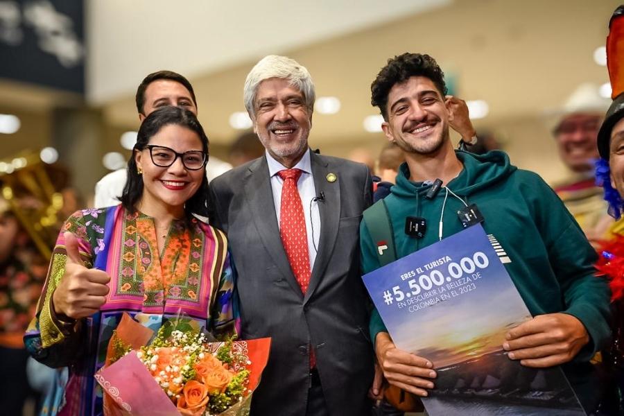 Las autoridades de turismo del país en cabeza del ministro de Comercio, Industria y Turismo, Germán Umaña Mendoza, dieron ayer un recibimiento simbólico al turista 5.500.000 en 2023 que arribó al aeropuerto Internacional Eldorado de Bogotá.