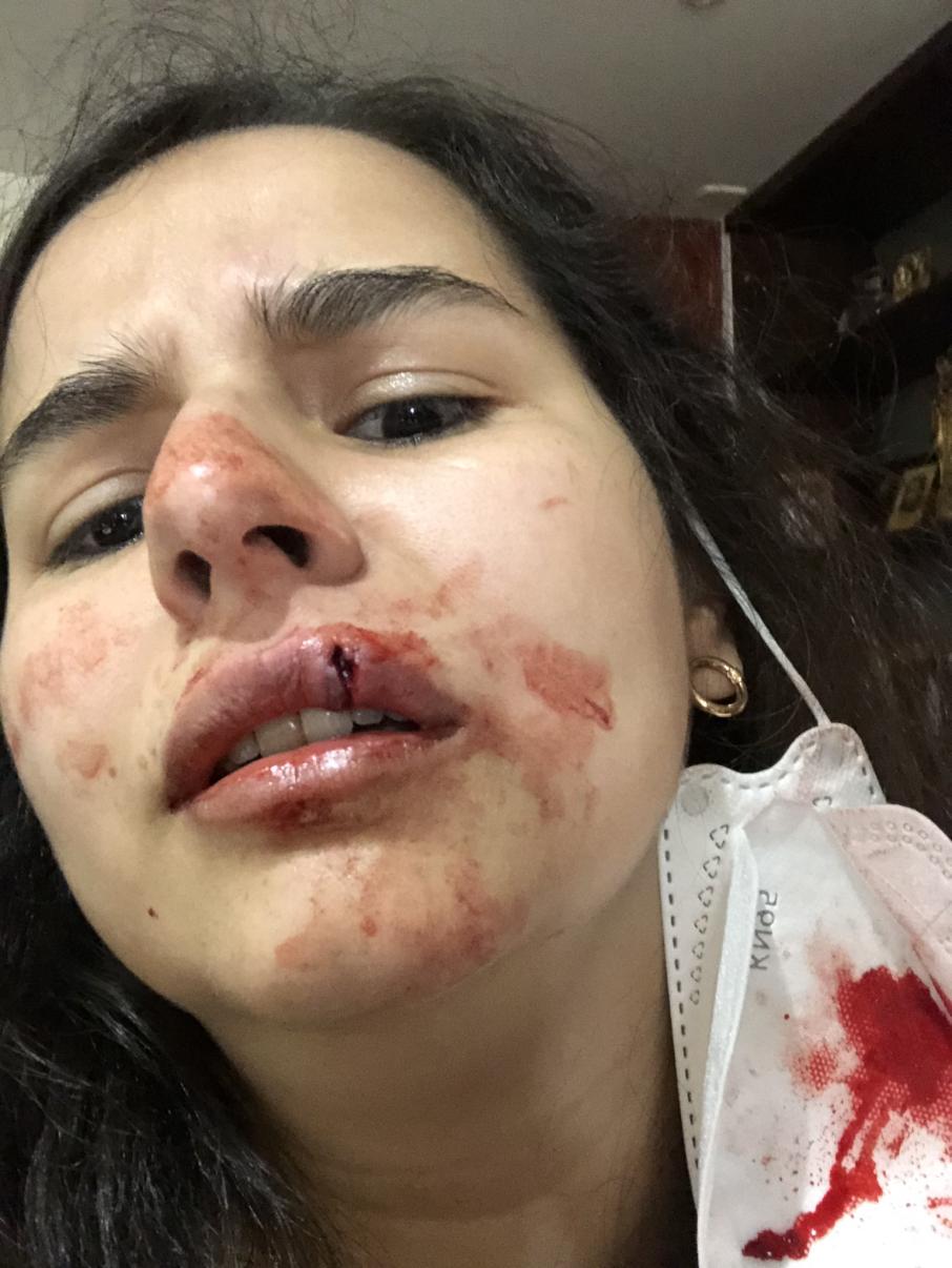 En las fotografías se logra evidenciar el fuerte golpe que le propinó Rafaella a la víctima dejando herida abierta en el labio superior. Según información, la mujer le solicitó formalmente a la agresora que se pusiera el tapabocas bien, por lo que al parecer no le gustó a la hija de Marbelle lo que dijo Ana María, recibiendo un fuerte golpe.