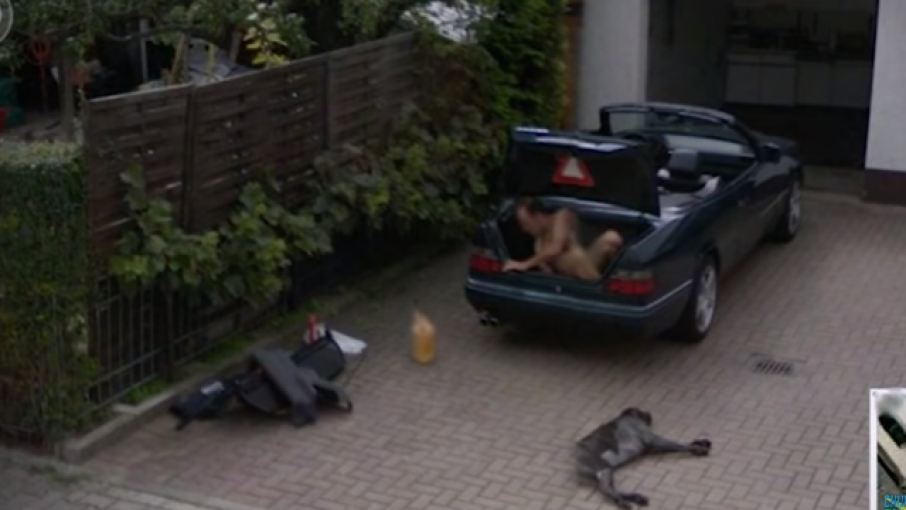 En las imágenes que le han dado la vuelta al mundo aparece el amante de su esposa ligero de ropa escondiéndose en la parte trasera de un lujoso automóvil, tal como lo captó Google Maps.