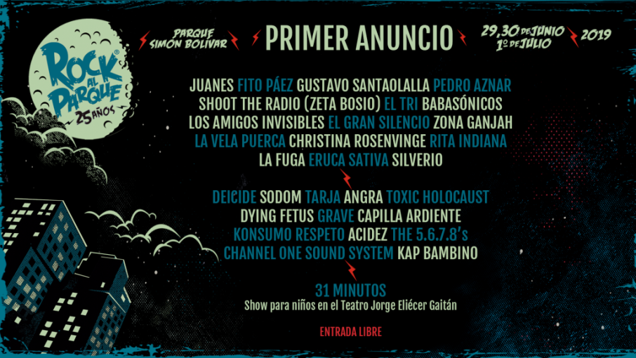 Por fin conocimos los primeros artistas que serán parte de Rock al Parque 2019, año en que se celebrarán los primeros 25 años del festival. A continuación conozcan de primera mano el anuncio oficial del evento que se llevará a cabo los días 29 y 30 de junio y 1 de julio en el Parque Simón Bolívar de Bogotá.