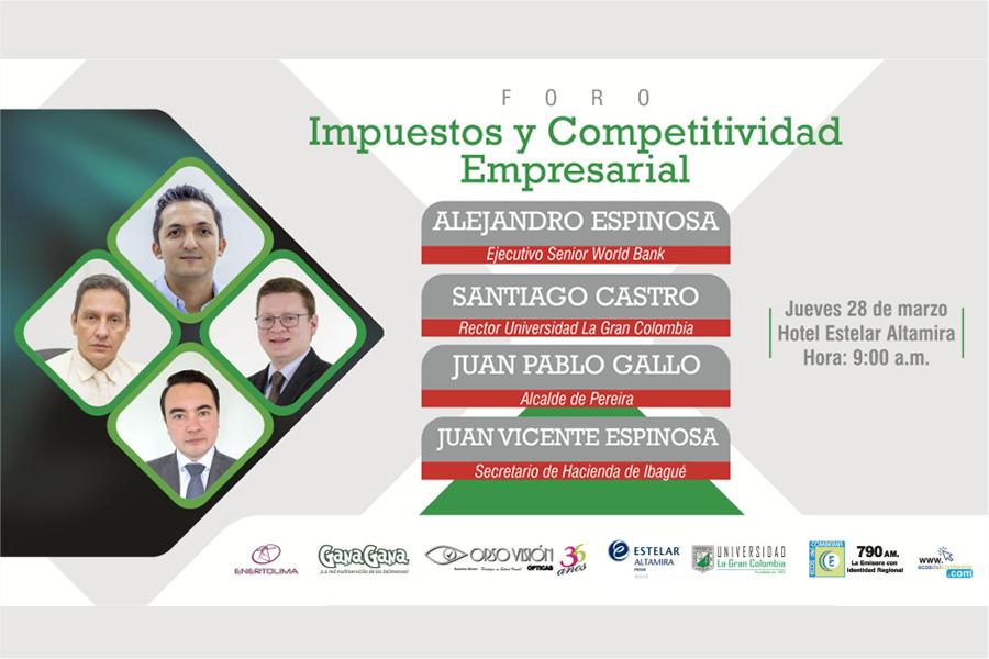 También el diputado Álvaro Ramírez, quien hoy es pre candidato a la Alcandía de Ibagué, habló en el marco del foro de Impuestos y Competitividad Empresarial, manifestó que Ibagué no es competitiva en materia de impuestos, esto debido a que no se facilitan muchas cosas y que para lograr ser competitiva se debe pensar primero en materia de salud, educación, vivienda mejorar el tema de vías y también el turismo que tanto carece en esta ciudad.
