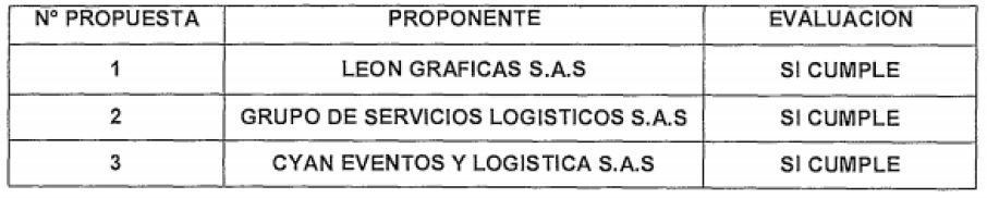 Los resultados de verificación de los requisitos habilitantes dan cuenta de CYAN EVENTOS Y LOGÍSTICA como el único de los tres proponentes que no cumple. Entre tanto, la Alcaldía de Ibagué, a través de la Secretaría de Cultura, Turismo y Comercio, presentó los resultados de la evaluación técnica: