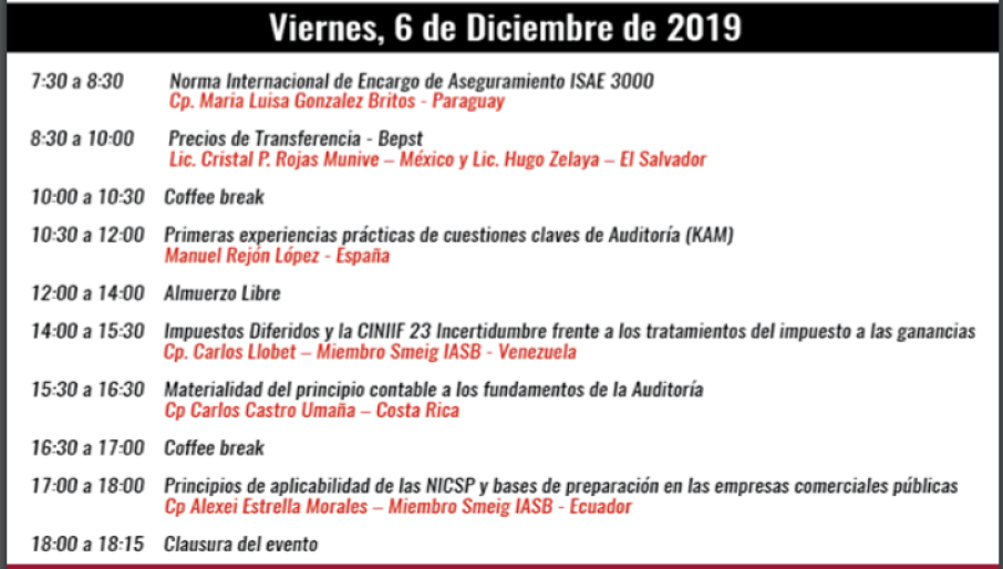 Mañana se retoma la agenda en torno a la Norma Internacional de Encargo de Aseguramiento ISAE 3000, y continúa con la discusión relacionada con los precios de transferencia. A lo largo del día se abordarán diferentes temáticas que concluyen a las 6:00 p.m.