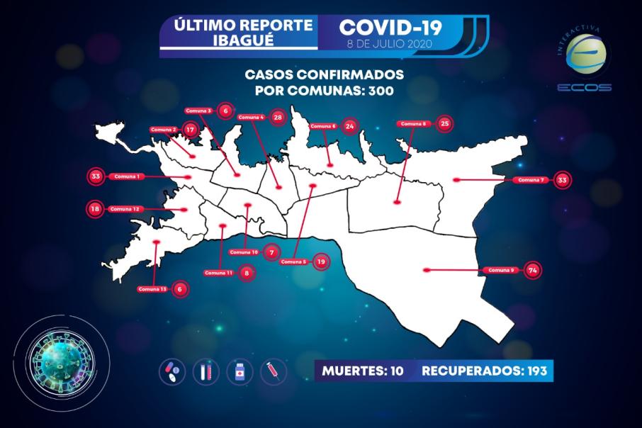 Conozca el mapa del COVID-19 por comunas en Ibagué tras llegar a los 300 casos