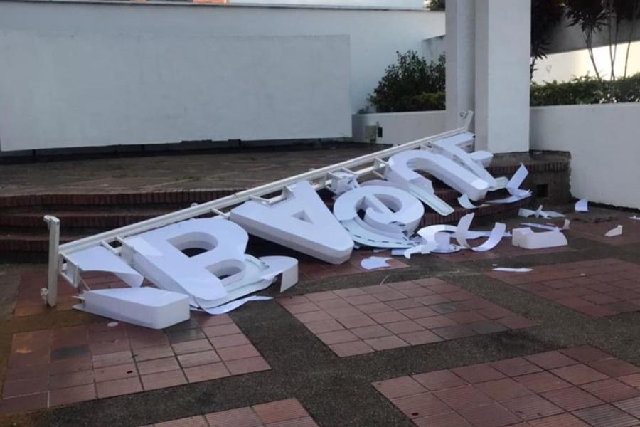Un supuesto “ventarrón” habría ocasionado el daño del letrero en la Plazoleta Darío Echandía