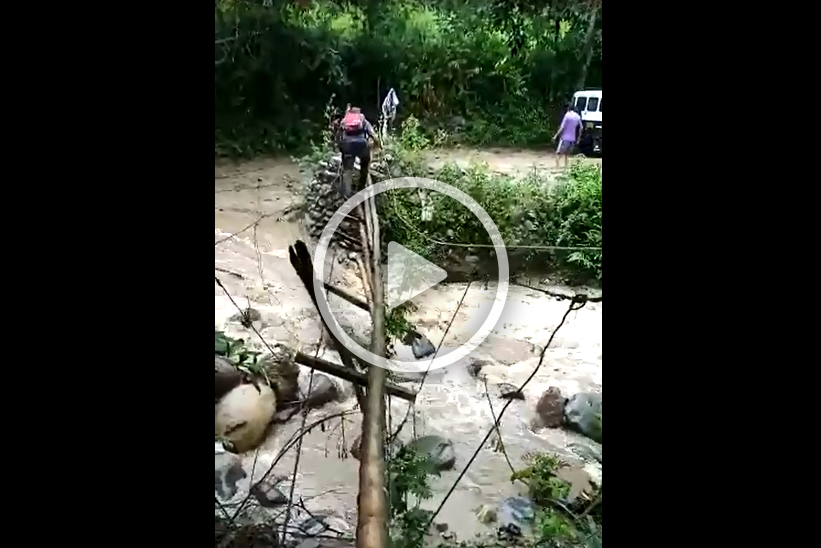 La estructura evidentemente deteriorada apenas goza de una extensa guadua sobre la cual deben caminar los niños y adultos que se dirigen hacia el centro poblado. Sin embargo, pese a la condición de peligro, el Gobierno Municipal al parecer no ha hecho nada al respecto.