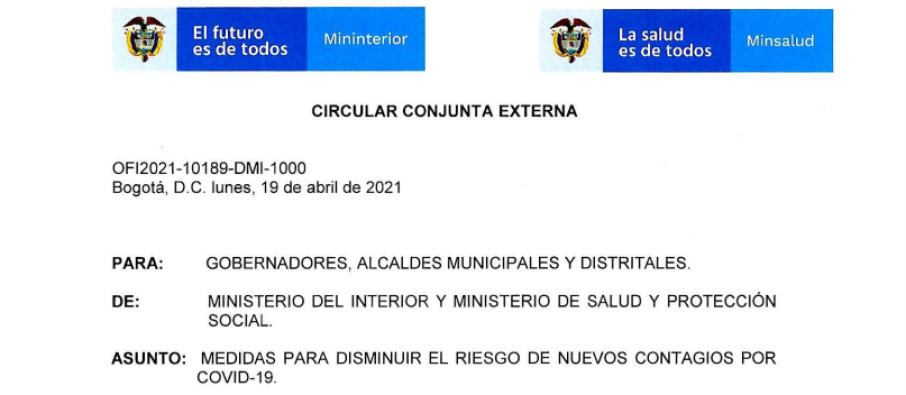 Mediane circular externa del Ministerio del Interior y el Ministerio de Salud y Protección Social, el Gobierno Nacional acaba de endurecer y prolongar las restricciones que deberán ser implementadas a partir de la fecha en ciudades que como Ibagué, arrojan actualmente entre 50% y 69% de ocupación en UCI.