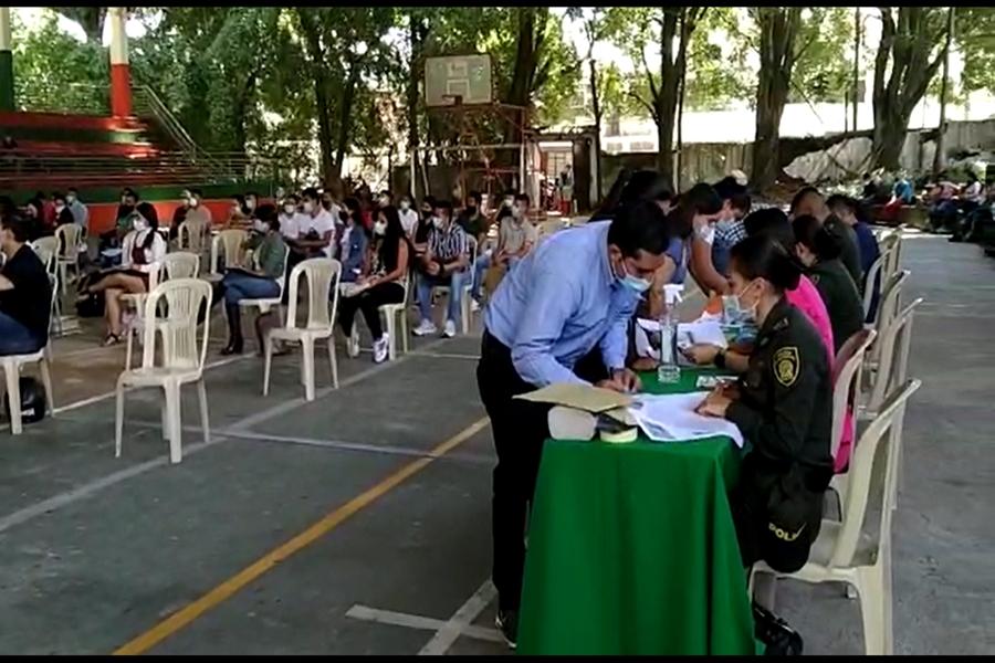Los jóvenes beneficiados por el convenio entre Alcaldía de Ibagué y Policía Nacional hicieron presencia en el Coliseo de la institución educativa Liceo Nacional dónde se les explicó cómo iba a ser su proceso de formación.