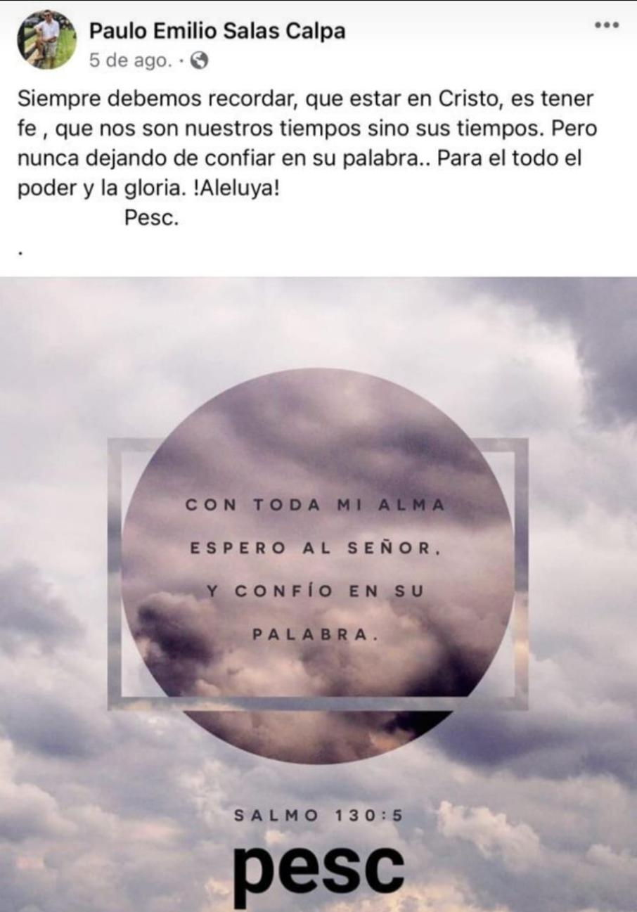 "Para nosotros es muy dura la partida Paulo, un hombre emprendedor que llegó de Nariño, que nos enseñó muchas cosas como el respeto y a hacer bien las cosas, llegó a Ibagué con la emoción de estudiar porque venía sin dinero, sin ninguna oportunidad y se le presentó venir acá, poder estudiar en la Universidad de Ibagué, tener su carrera de Ingeniería Industrial y ayudar en muchos proyectos sociales, inicio en la Fundación Social, tuvo la oportunidad de trabajar en la política hizo varias especializaciones y participó en cargos importantes en el Tolima, siempre con el ánimo de colaborarle a las personas y enseñarles la mejor manera de llevar sus finanzas, su economía y su vida adecuadamente, le sobrevino una enfermedad terrible como el cáncer, el señor le permitió cinco años más de vida junto a su familia, tratamos de escoger las mejores cosas para él pero ya eran muy fuertes los dolores que sentía, lo tuvimos que hospitalizar y los tratamientos entre su enfermedad y su evolución no fueron los más adecuados, nos arrodillamos ante Nuestro Señor Jesucristo, nos volvimos cristianos y ante su presencia él pidió perdón, agradeció y se entregó en sus brazos quién se lo permite recibirlo hoy, agradecemos a todas las personas que lo conocieron sepan que los llevamos en el corazón y en lo que les podamos servir con su ejemplo de vida, esperando que nuestro señor Jesucristo los siga fortaleciendo en todo momento", expresó su esposa Dina María Rivera Rodríguez.