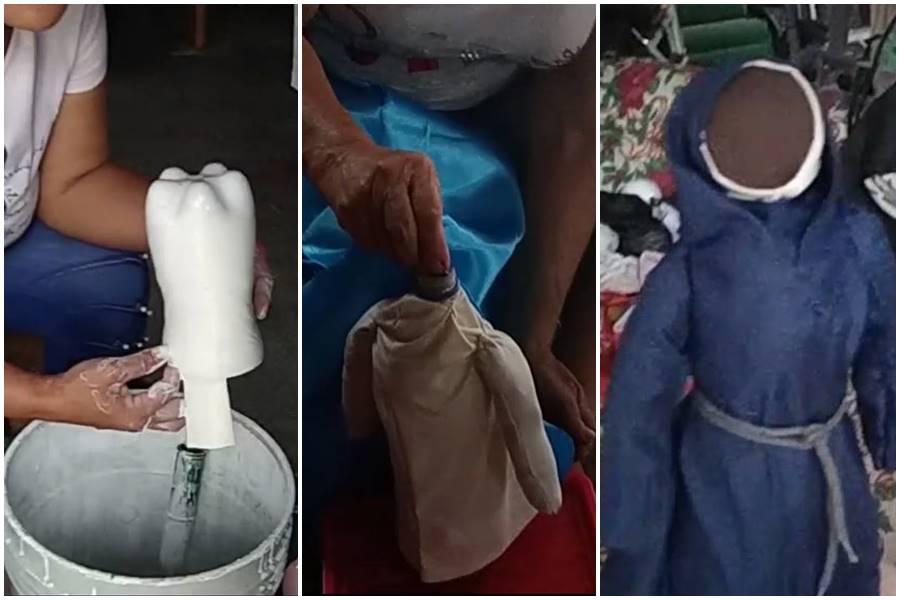 Con elementos reciclables, familias damnificadas por el río Combeima están armando un pesebre navideño