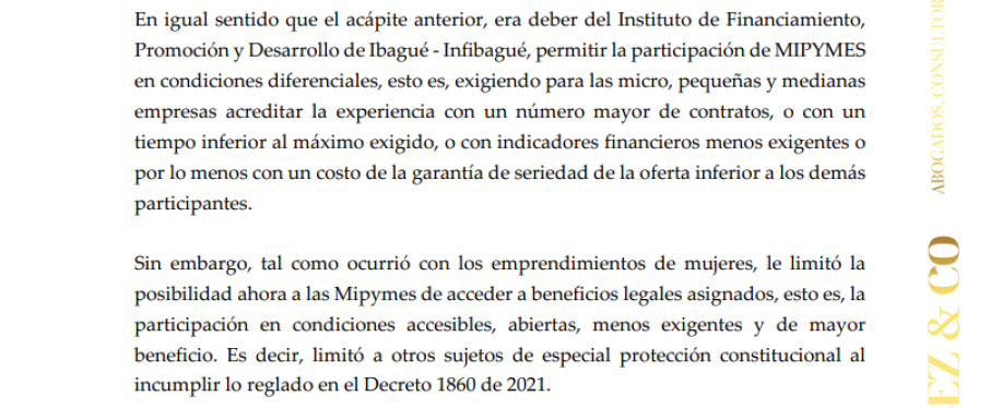 "Basta tan solo una lectura rápida a los documentos del proceso de contratación para corroborar que no existe siquiera una medida por parte de Infibagué para incorporar requisitos habilitantes diferenciales en la licitación pública", agrega el conocido jurista que en días anteriores intentó frenar el Festival Folclórico Colombiano.