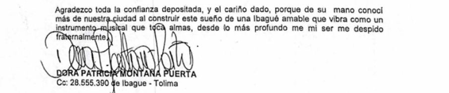 "Posicionamos a Ibagué dentro del ranking de ciudades capitales con mejor desempeño institucional (...) de su mano conocí más de nuestra ciudad al construir este sueño de una Ibagué amable que vibra como un instrumento musical que toca almas. Desde lo más profundo de mi ser me despido fraternalmente", concluye el oficio radicado ayer ante el despacho de Andrés Fabián Hurtado.