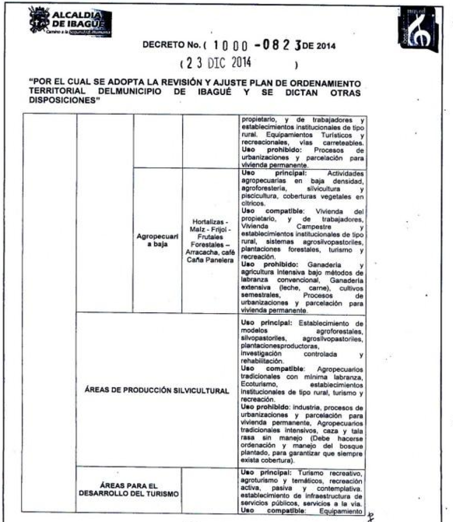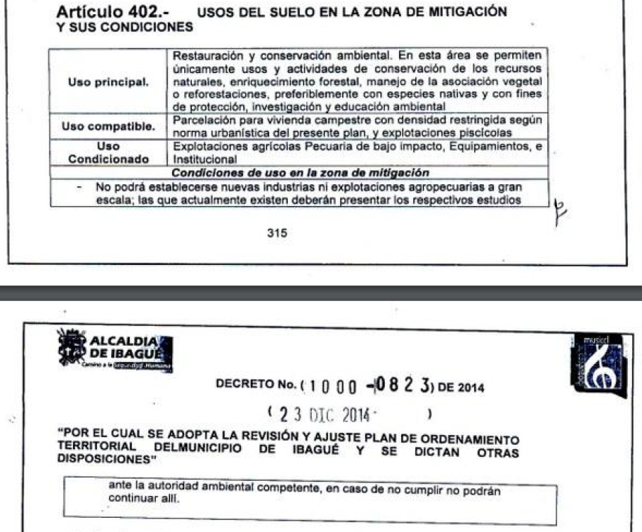 Precisamente, Cardoso tuvo que demandar el Plan de Ordenamiento Territorial por la aparente vulneración de la concertación ambiental, es así como -por ejemplo- en las zonas bajas de producción agrícola, contempladas en el artículo 411, el uso de suelo aparece prohibido y compatible a la vez.