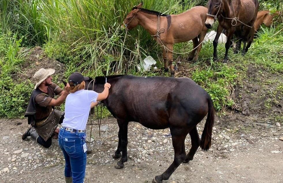 Un equipo de profesionales de la salud animal, vinculados a la Alcaldía de Ibagué, visita la vereda Carrizales parte baja, para brindar vacunación gratuita contra la encefalitis equina venezolana.