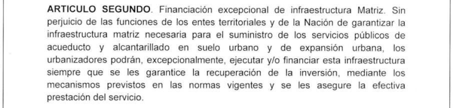Ante la necesidad que tienen las constructoras de garantizar el suministro de agua potable para los proyectos residenciales que se ejecutan en la zona de expansión de Ibagué, el acuerdo 0006 del 3 de mayo del 2022, firmado por el presidente del Concejo Municipal, surge como una alternativa efectiva.