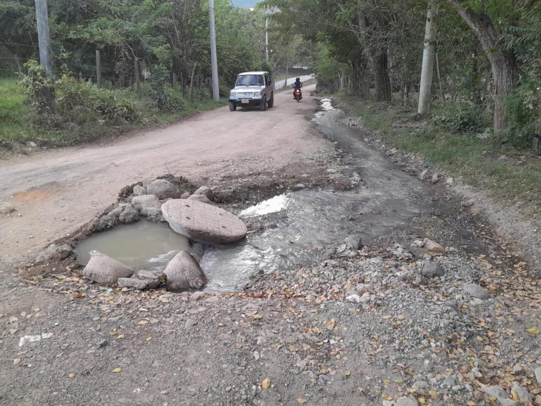 “En este sector, en una de nuestras vías, se está ejecutando una obra para pavimentación por parte de la Gobernación del Tolima y está siendo ejecutada por la empresa Asfaltemos desde el mes de enero con una lentitud tremenda y esta obra lo que ha ocasionado es que se colapse el alcantarillado de nuestro sector donde va el descole, debido a que el mal trabajo de ellos de Asfaltemos, al dejar destapados pozos y tuberías en el transcurso del trabajo, lo que llenó las tuberías de material y hay alrededor de tres pozos tapados porque se ha reventado el tubo”, explicó doña Claudia a través de Ecos del Combeima.