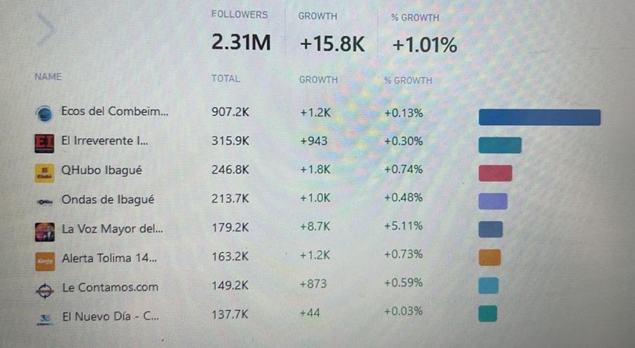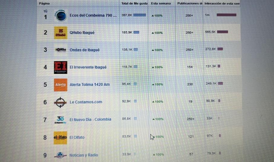 Precisamente, Ecos del Combeima tuvo durante la última semana más interacciones (1 millón) en Facebook que el resto de medios locales.