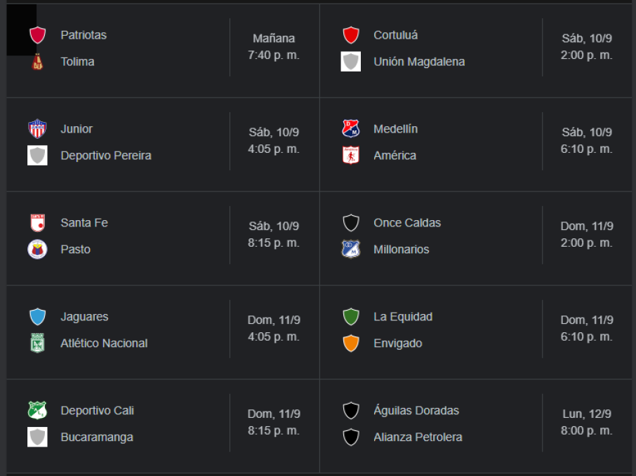 Con el enfrentamiento entre Patriotas y Tolima comienza la fecha 11 de la Liga BetPlay