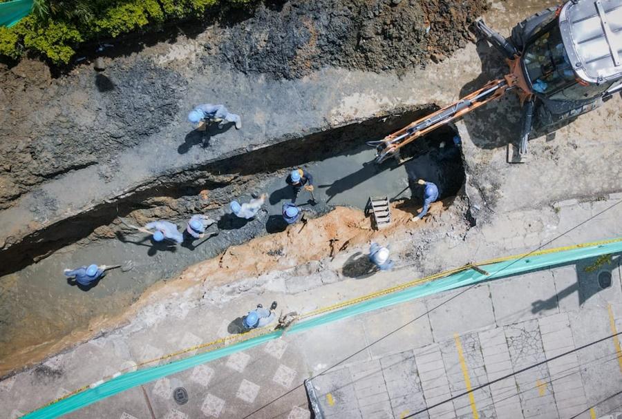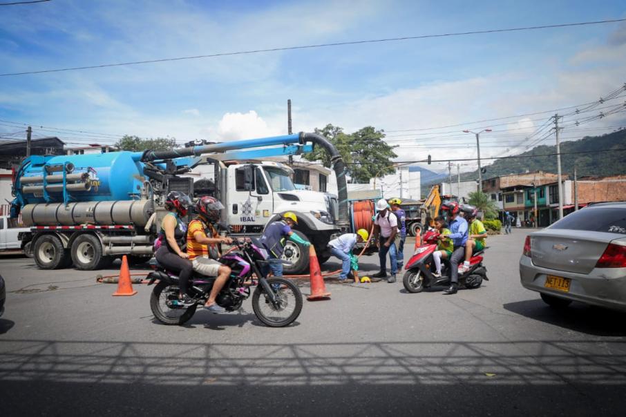 Frente a las obras en el lugar de la emergencia, la Gerente detalló que se hará la intervención en una tubería de 20 pulgadas, donde se pasará de un material de más de 40 años de antigüedad a PVC, con una inversión de $ 500 millones, y donde más de 40 operarios y contratistas del IBAL están laborando.