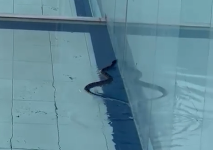 Se trata de una culebra de gran tamaño que apareció en una de las piletas, muy cerca de la puerta de ingreso a ese complejo comercial. Días antes la ciudadanía reportó la presencia del animal que en esa ocasión transitaba sobre la carretera con rumbo hacia el separador.
