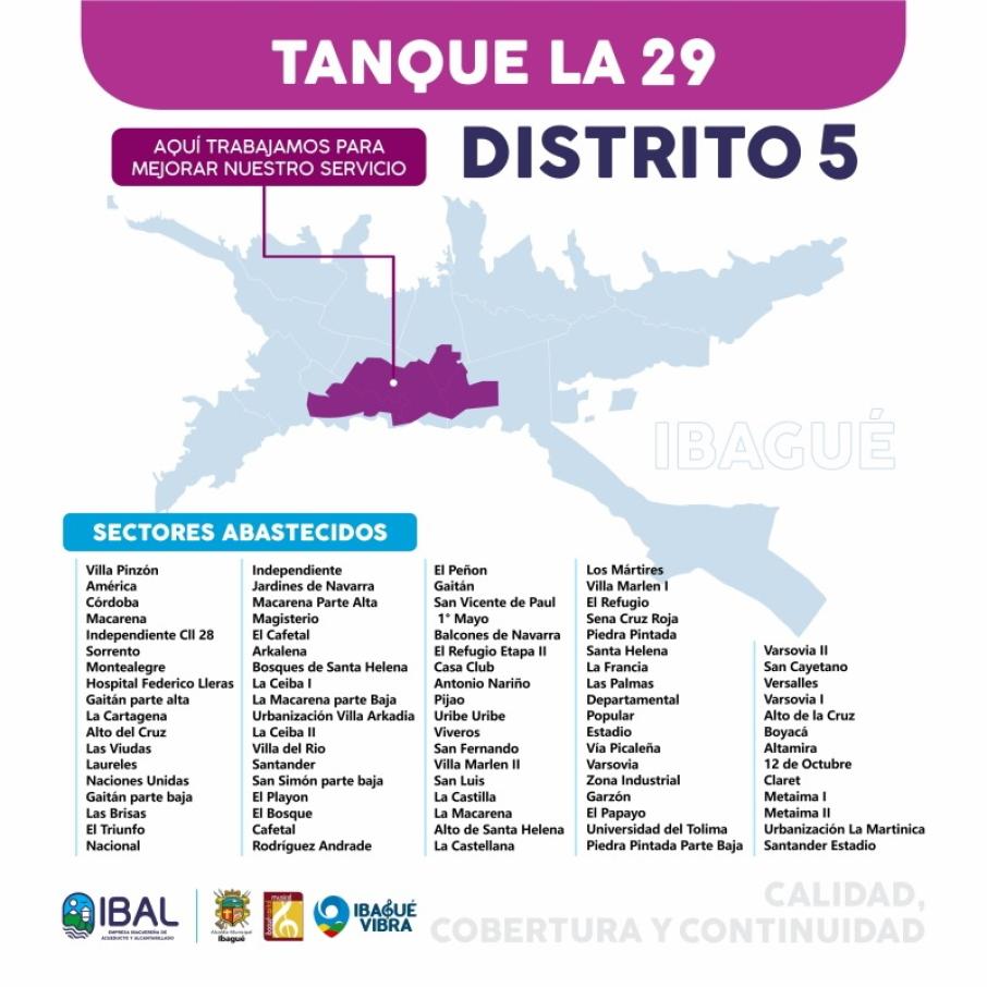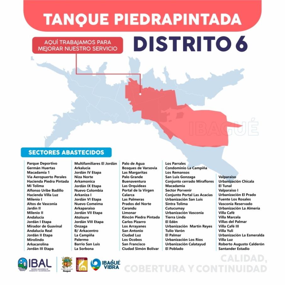 Como consecuencia de la intervención de varios distritos hidráulicos para mejorar la distribución, un grueso número de barrios de Ibagué tendrán intermitencia o ausencia del suministro de agua potable durante este domingo 27 de noviembre.