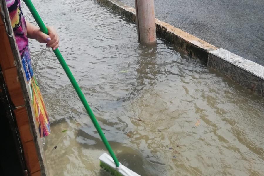 La urbanización Martín Reyes, en inmediaciones del barrio Jardín, se quedó sin andenes debido a que los altos niveles del agua impedían el tránsito de personas y amenazaban con generar daños en muebles y electrodomésticos tras alcanzar el interior de algunas viviendas.