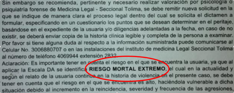 La determinación de medicina Legal es que la mujer queda con deformación de rostro de manera permanente, y la víctima indica que debido a esta afectación en su cara el supuesto agresor se “burla” de ella cuando realiza publicaciones al igual que la familia.