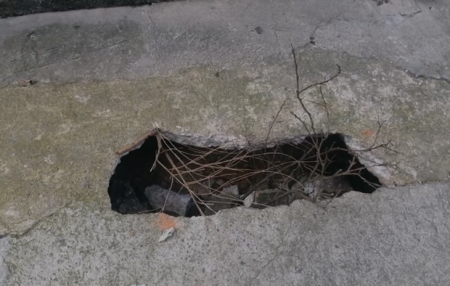El hueco que se puede observar en el video inició como una fractura pequeña sobre la vía y con el pasar de los días ya se ha ido aumentando el diámetro de esta afectación.