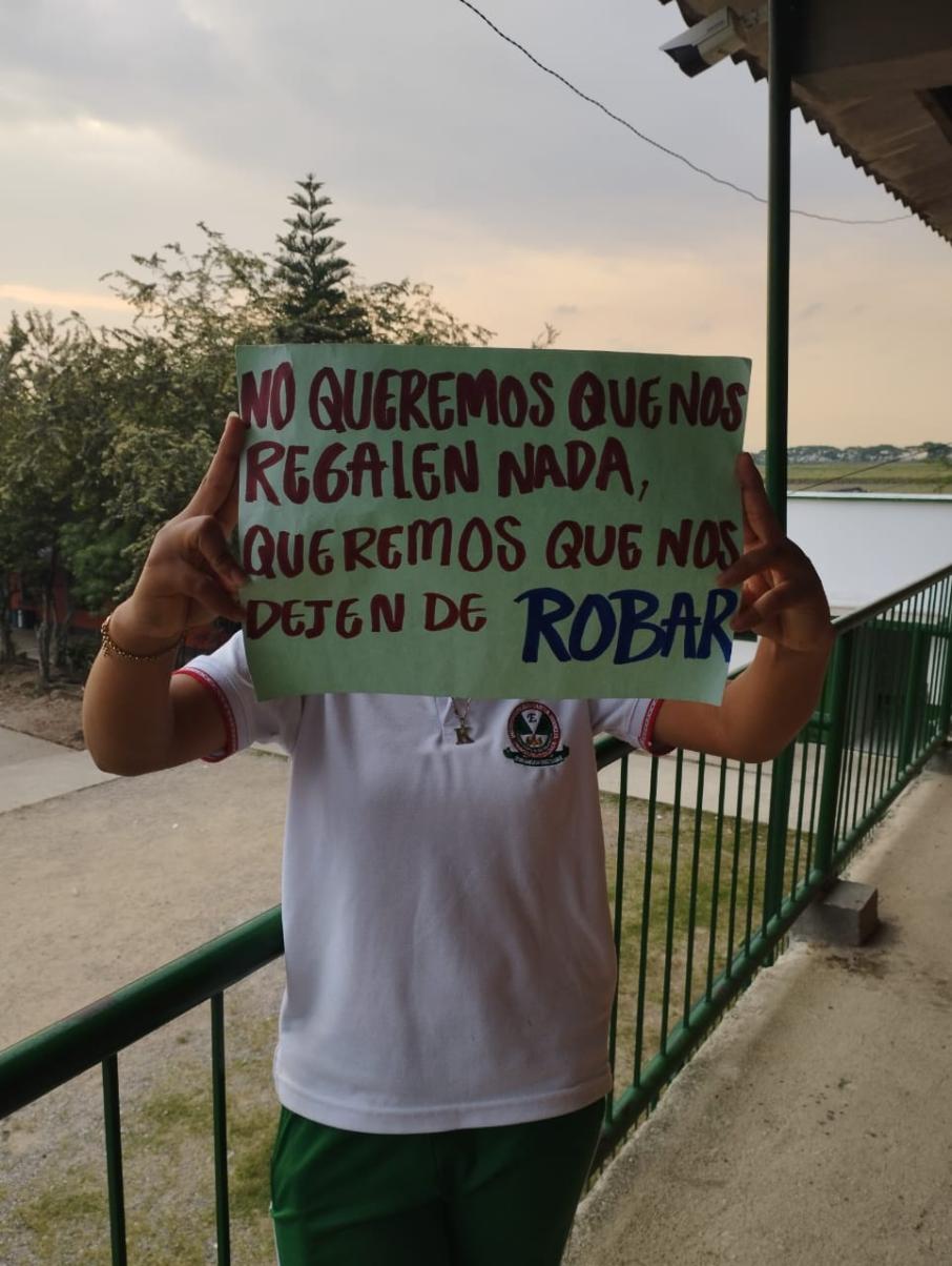 “Tenemos malas condiciones de infraestructura, aseo, vigilancia, falta docentes, no contamos con servicio PAE para todos los estudiantes, además cuando llueve parece que estuviéramos en un río”, expresó Heidy Alejandra Meza Representante estudiantil.