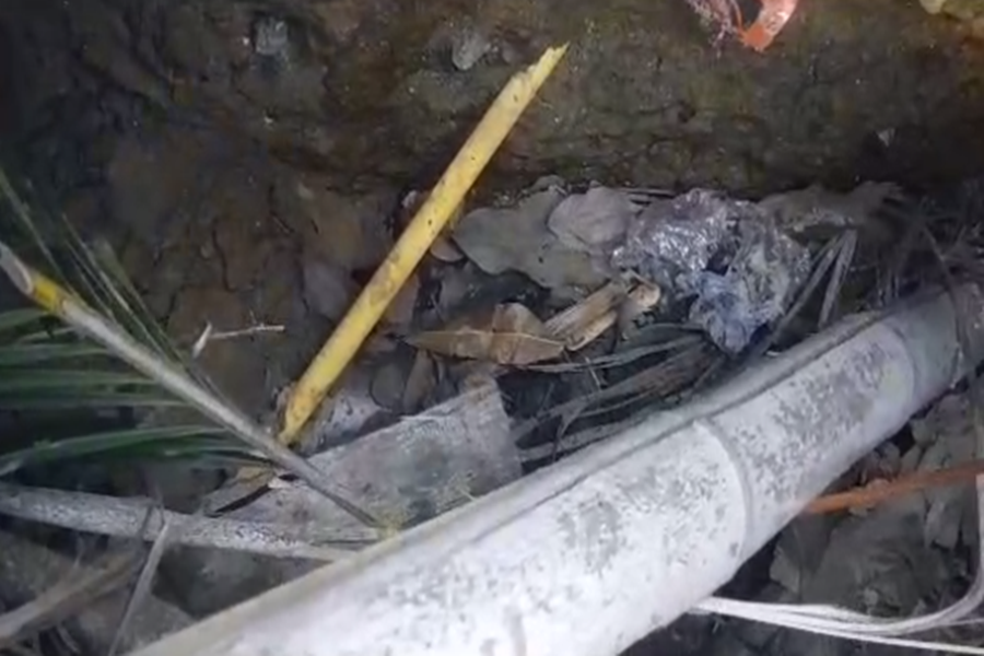 Para llamar la atención sobre la afectación y prevenir posibles accidentes, los residentes colocaron palos en el hueco, con el objetivo de evidenciar su existencia y evitar que alguien resulte herido.