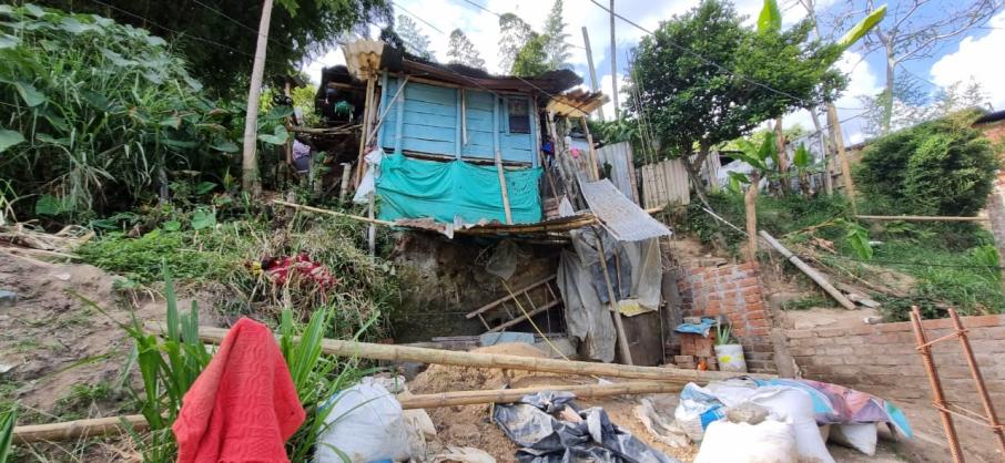 Esta situación, que tiene lugar en la carrera 16 con calle 13, es agravada por la topografía del terreno. La comunidad vive en una zona de escaleras, donde el acceso y la evacuación en casos de emergencia pueden ser difíciles. Algunas viviendas, como alerta Jairo, son construcciones improvisadas en terrenos no regulados, lo que aumenta los riesgos en caso de deslizamiento o lluvias intensas.